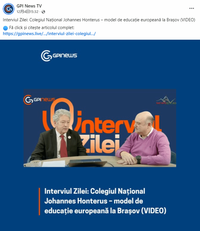 近日,我校孔子学院教学点——布拉索夫洪特鲁斯国立学校校长拉杜·奇瓦雷安接受GPI新闻节目专访,系统介绍了学校的发展规划与国际合作布局。其中,该校与布拉索夫特兰西瓦尼亚大学孔子学院开展的深度合作成为谈话重点。
