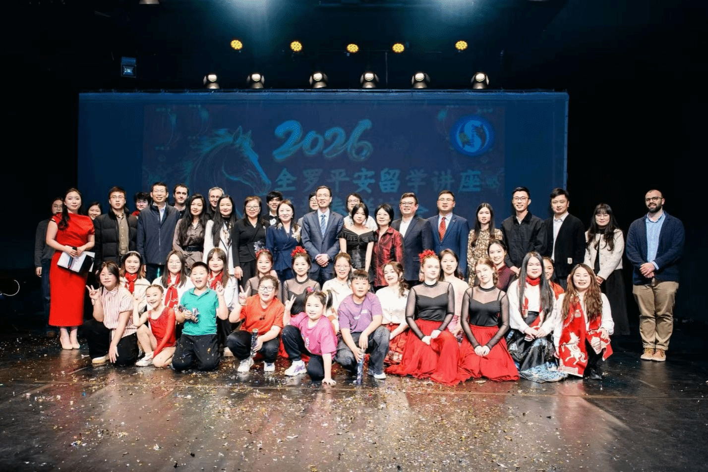 2月28日,2026年全罗学联平安留学讲座暨新春联谊会在布加勒斯特国家剧院隆重举行。中国驻罗马尼亚大使陈峰、使馆参赞张丽丽、领侨处主任李立、教育事务专员周国宁以及布加勒斯特中国文化中心主任徐宁波等嘉宾出席活动。我校特来西瓦尼亚大学孔子学院志愿者教师代雨欣受主办方邀请,与百余名在罗留学生、华侨华人及当地友好人士欢聚一堂,共迎新春。